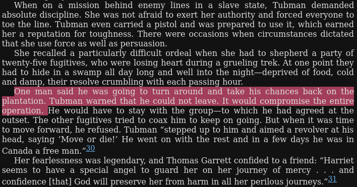 Why did Harriet Tubman (a Civil War spy and sharp-shooter btw) say she carried her pistol mostly for run-aways [1] that couldnt keep the necessary poker-face?