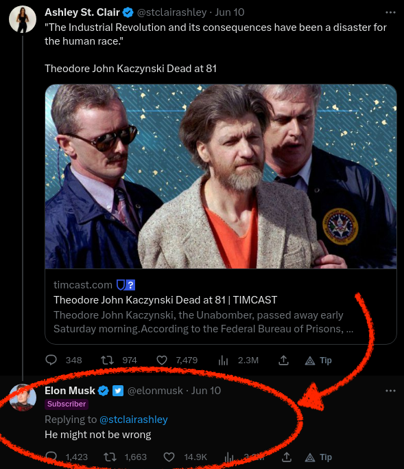 Ted Kaczynski was one of my “lockdown” reads [1] during a ~3 year twitter hiatus.