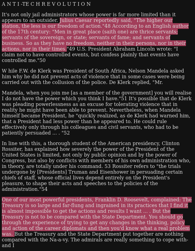 He draws political trends together across national boundaries and historical time periods, like a Political historian. At times it read like “Modernization & Postmodernization” (by Englehart) or something by Caroll Quigley.