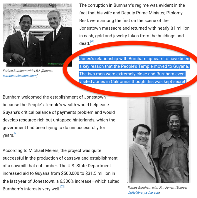 I wont go much into Jim Jones and how the People’s Temple got to Guyana (the Marxist Cheddi Jagan, and Prime Minister Burnham who Jim Jones [1] was really close to)