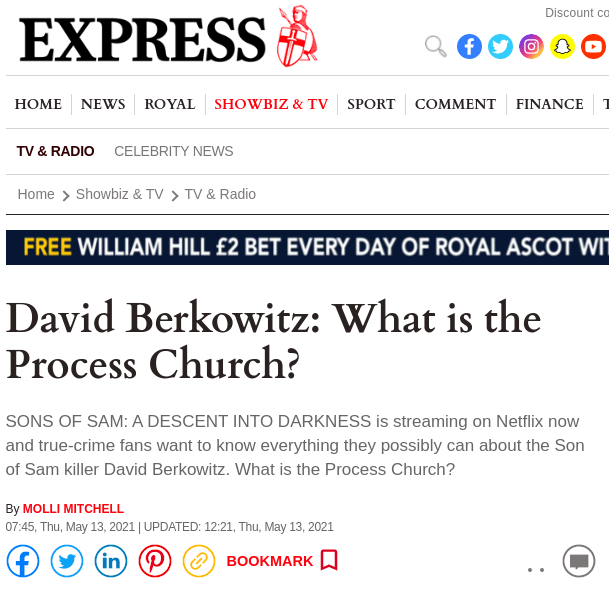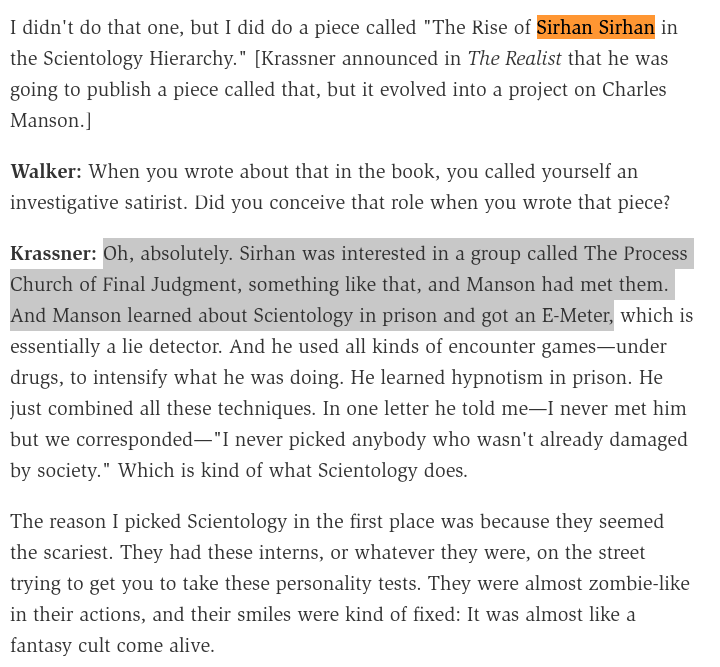 The Process Church had as members the “serial killer” Sam Berkowitz known as the “Son of Sam” and Sirhan Sirhan (RFK’s supposed assassin) was also associated.