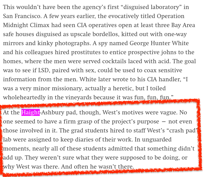 It is almost as if Haight-Ashbury was actually not an organic “hippie free love” movement after all..