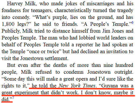 Well Harvey Milk refused to condemn the events at Jonestown for some VERY ODD reason.