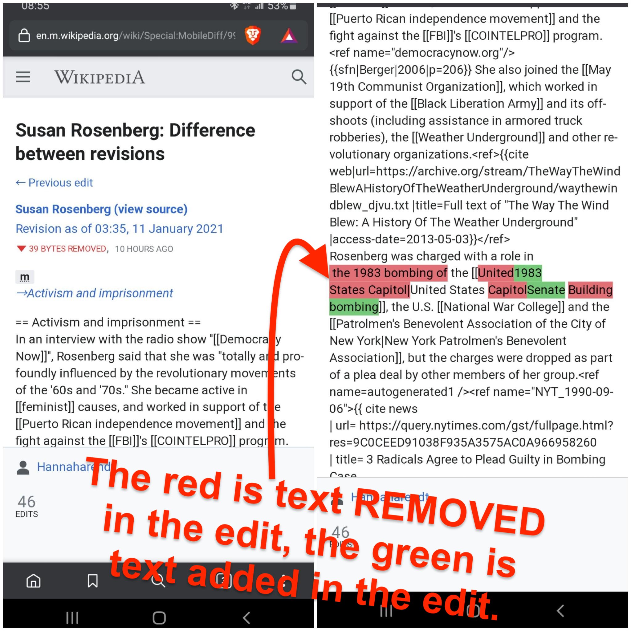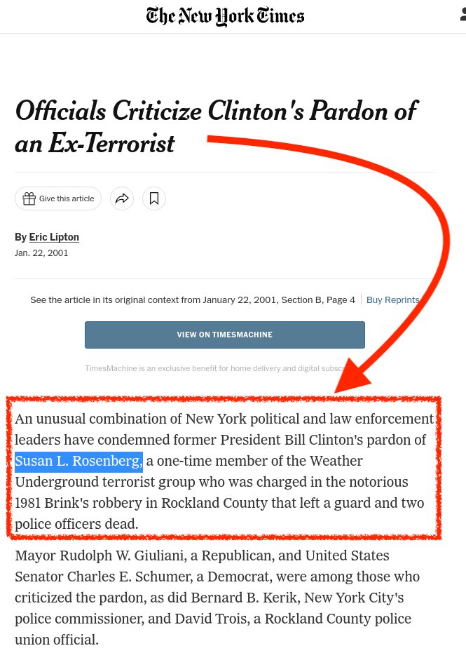 Curiously, a few days after the 6Jan Capitol riots, her wikipedia page was edited and locked to obscure explicit reference to her involvement in the 1983 Capitol bombing.
