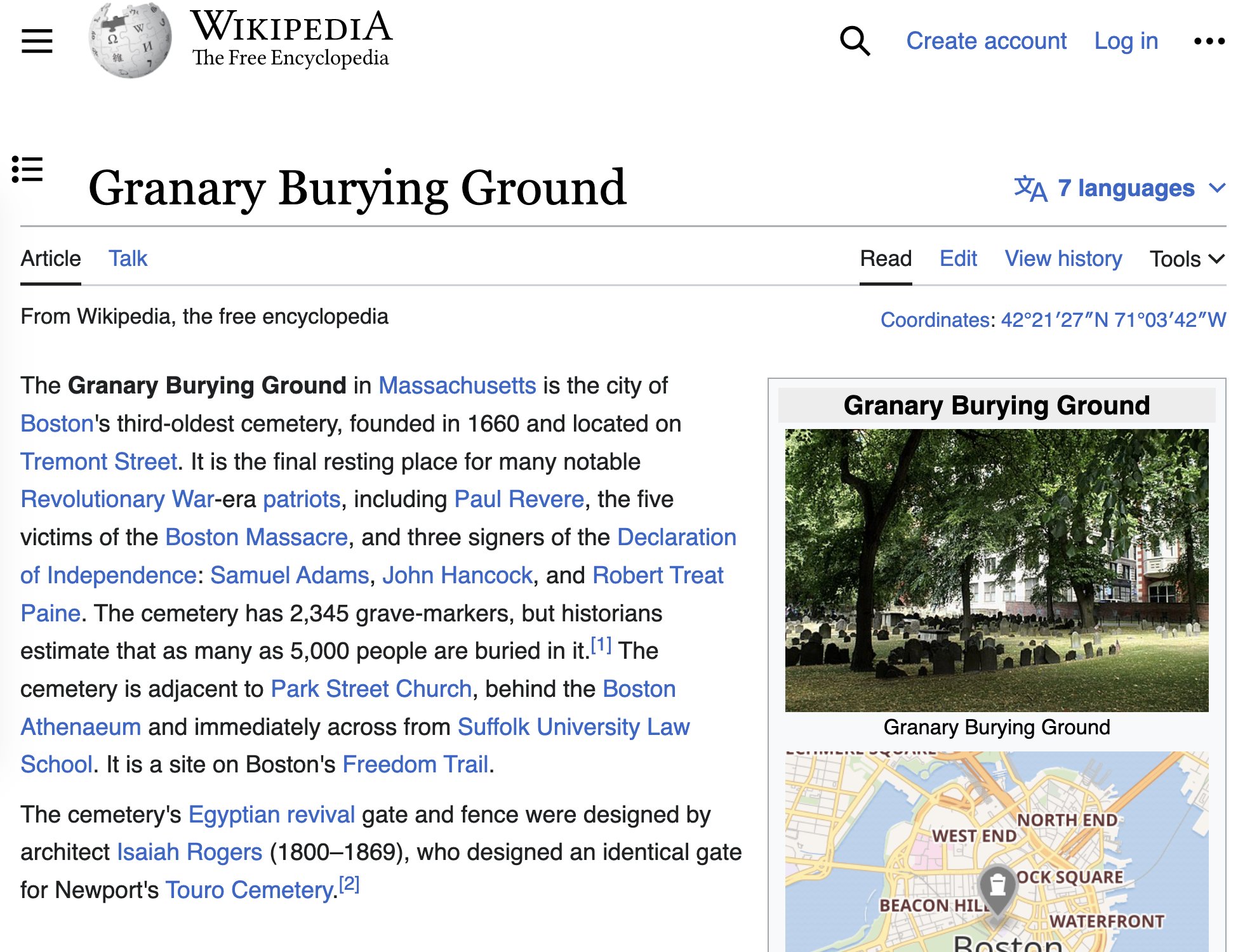 Also, if he WAS a slave, why was he buried at Granary Burying Ground w Samuel Adams, John Hancock, Paul Revere et al?