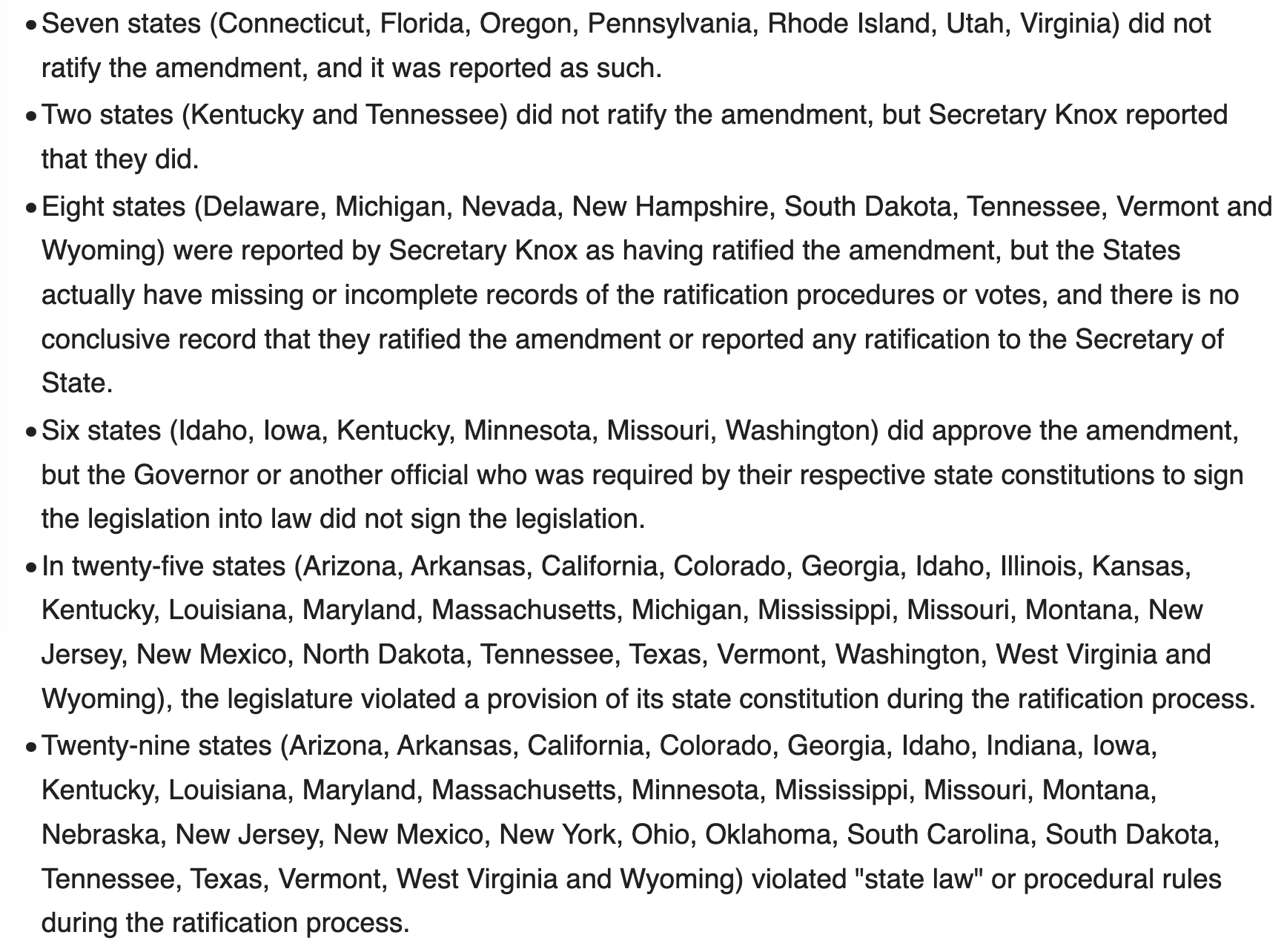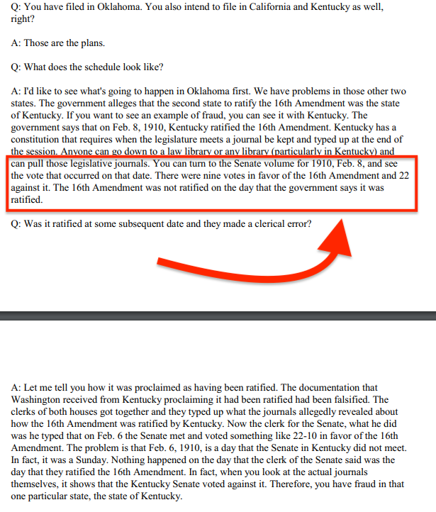He had what he claimed to be a long list of proof of illegitimacy of 16th Amendedment ratifcation in many states,
