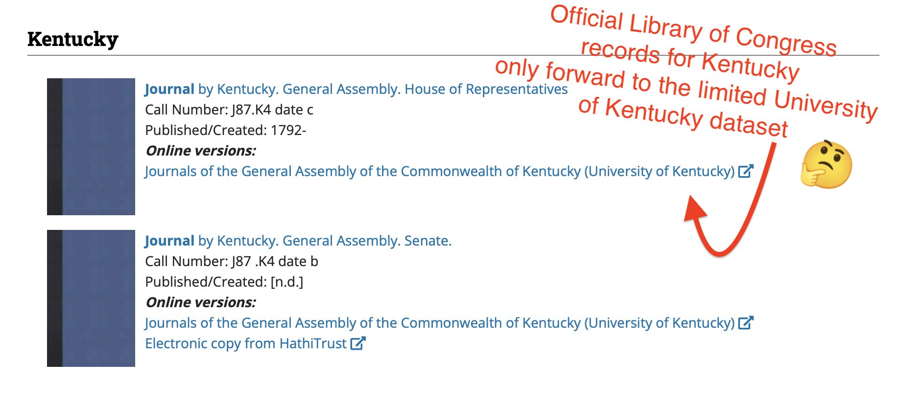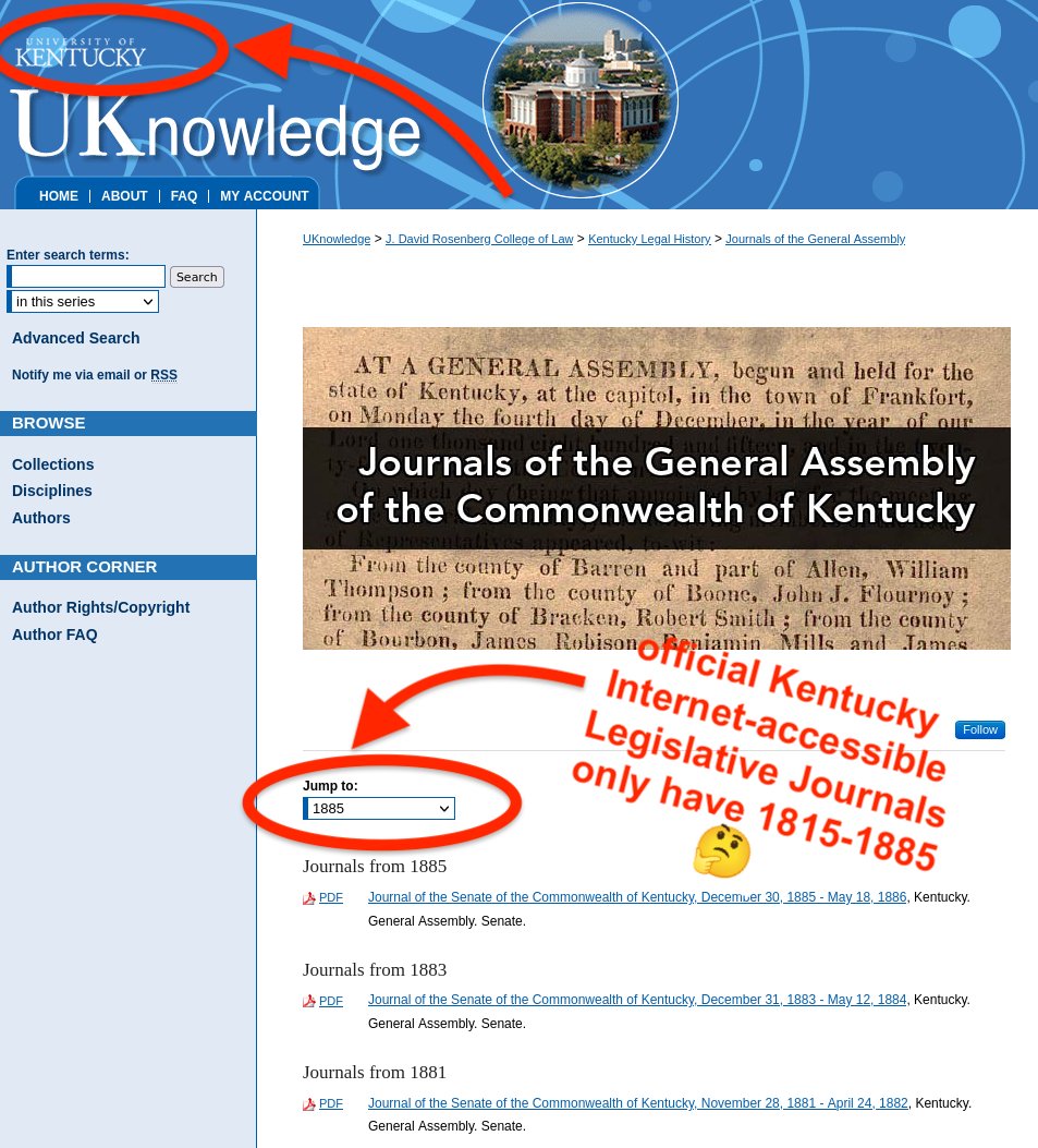 Remember how the Legislative journals on Kentucky public digital records skipped the years I needed?