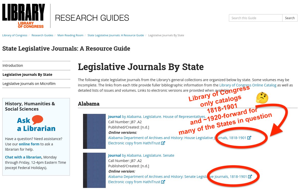 I casually looked online for these docs for quite a while, but kept failing. MOST of the publicly available “State Legislative Journals” seemed to skip 1910.