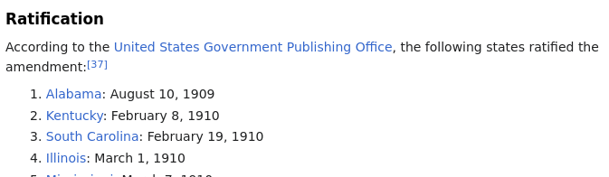 Maybe somehow a vote of “NEA” actually meant “YEA” to adopt the 16th Amendment.