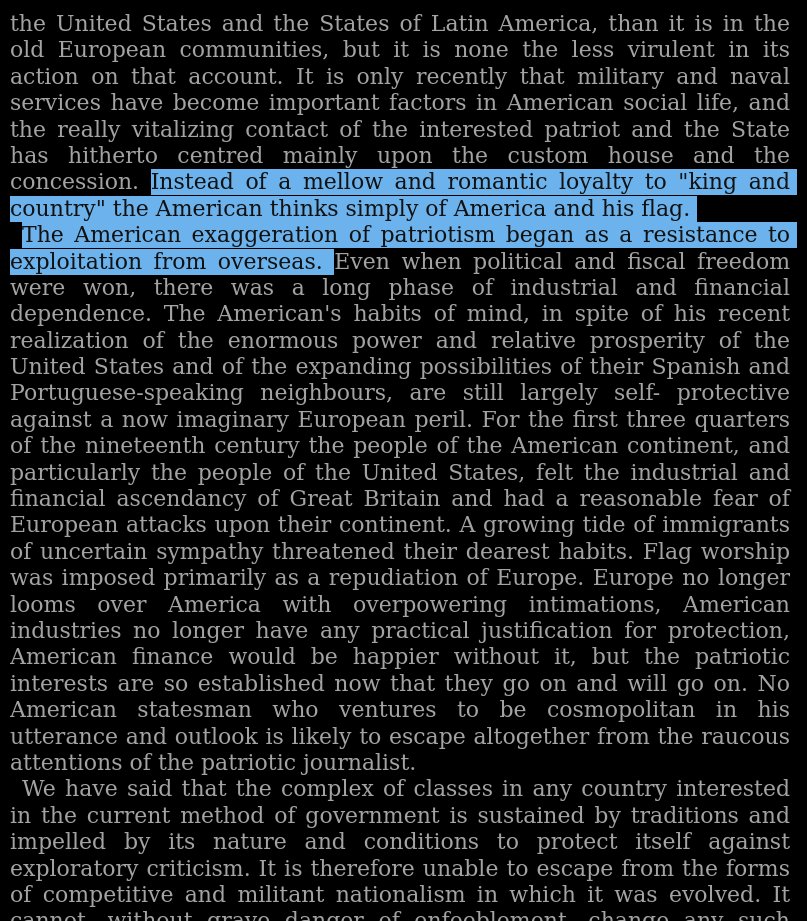 He completely overlooks that this kind of patriotism can actually be a “peace preserving” and stabilizing force.